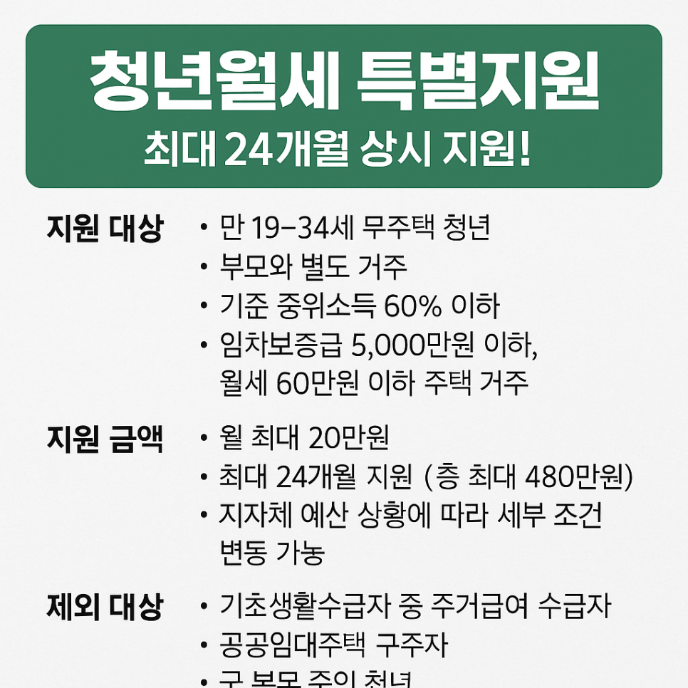 청년월세 특별지원|이제는 상시 신청, 최대 24개월 지원까지